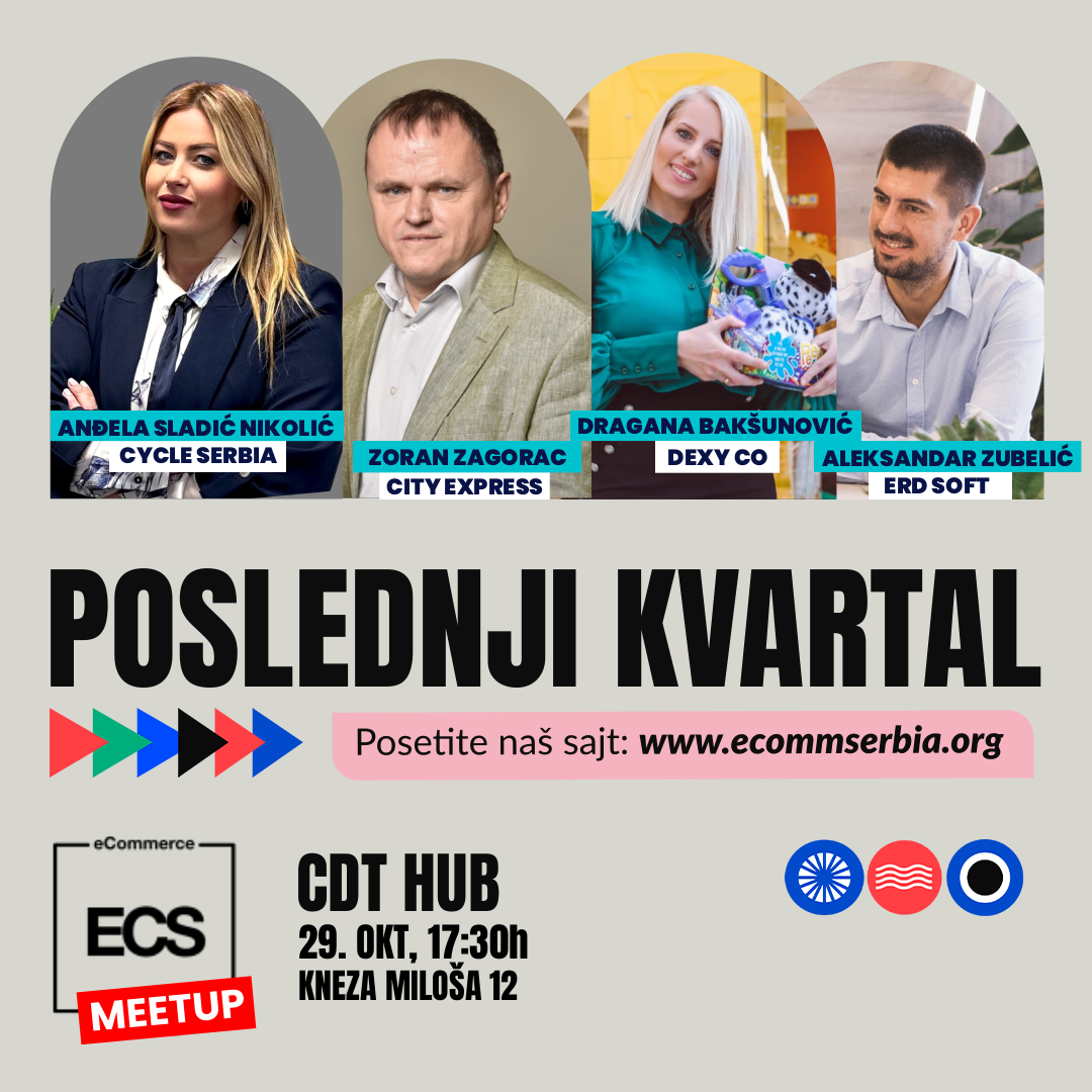 eCommerce Asocijacija Srbije vas poziva na ECS MeetUp na temu „Poslednji kvartal (Q4)”. Pridružite nam se 29. oktobra 2025. od 17:30 časova u CDT HUB-u (Kneza Miloša 12, 6. sprat) i sagledajte najintenzivniji deo godine iz više perspektiva.
